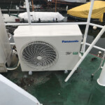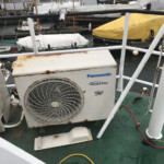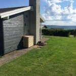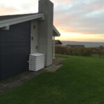 Billede af anlæg der står på jordstativ. Denne montageform anvendes ofte ved træhuse for at undgå rystelser fra varmepumpen forplanter sig i huset.